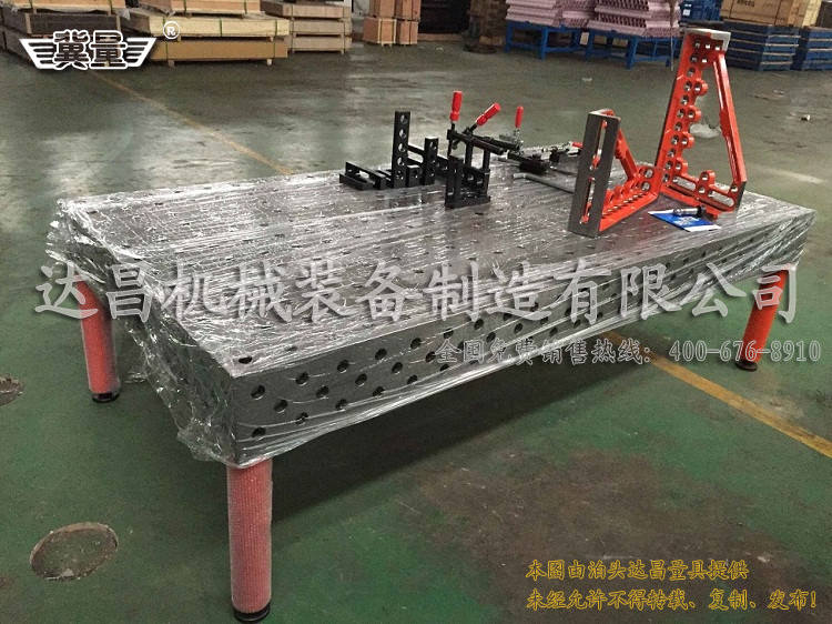 三維焊接工裝是堅固耐用的,而且比較好清理,在焊接過程中用防飛濺液就可以除去表面的焊渣就可以。達昌生產的三維焊接平臺都是采用HT300材質樹脂砂鑄造的,工裝也都經過特別的處理,在整體質量上面有很大的提升。